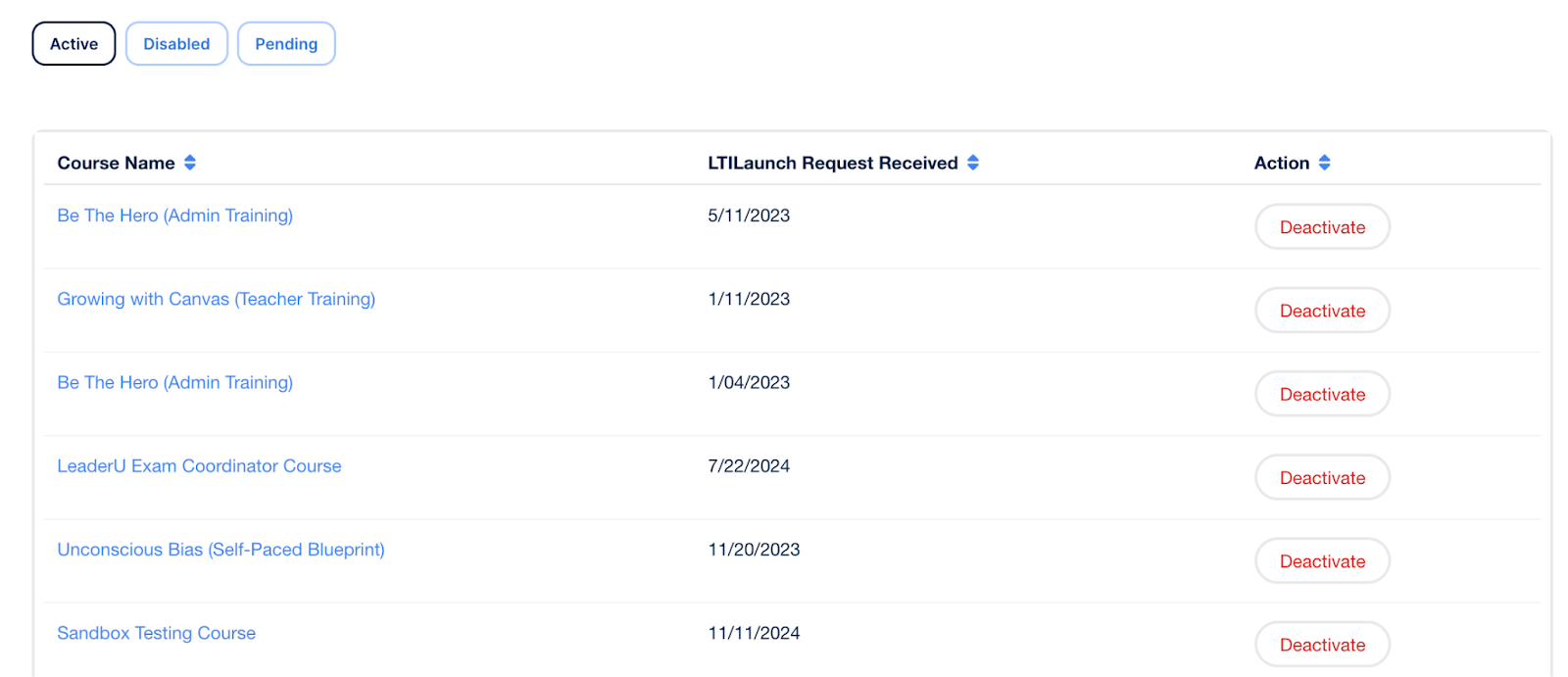 - Updated sorting tabs from integrated courses on the Canvas LTI Page within the Institution Profile