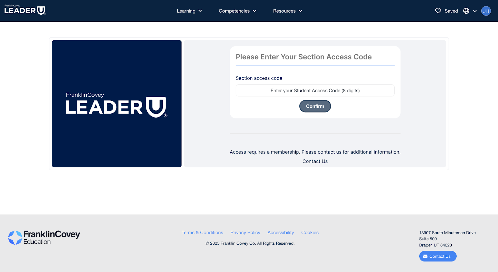 Enter the section access code your instructor provided you. Enter in the code and press Confirm