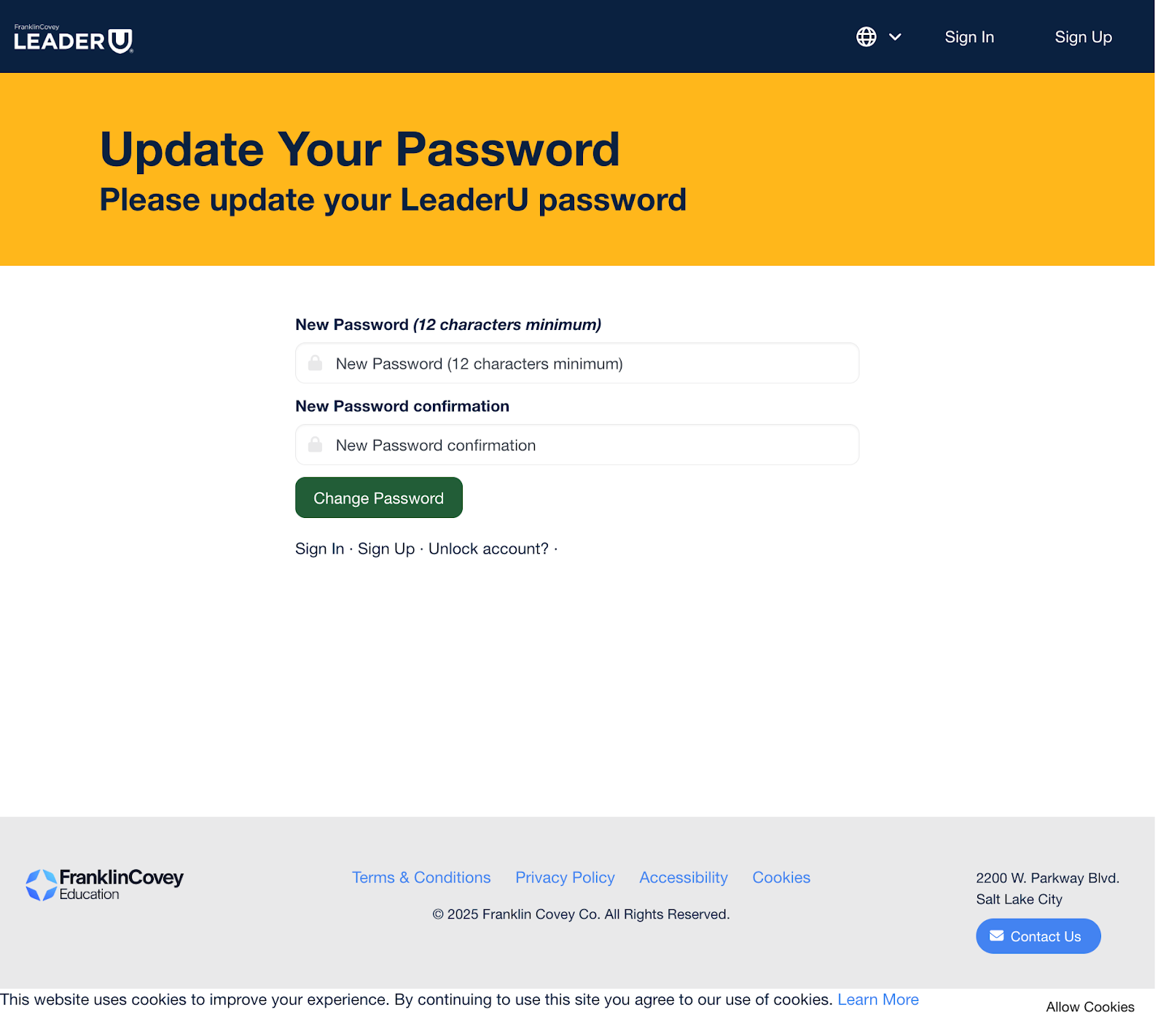 Note: When students click the "Set your password" button in the welcome email, they will be directed to an "Update Your Password" page.