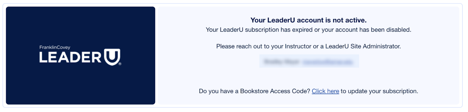 Purchased LU account with school email; registered in your course section; checked your spam folder for email from FranklinCovey Exams