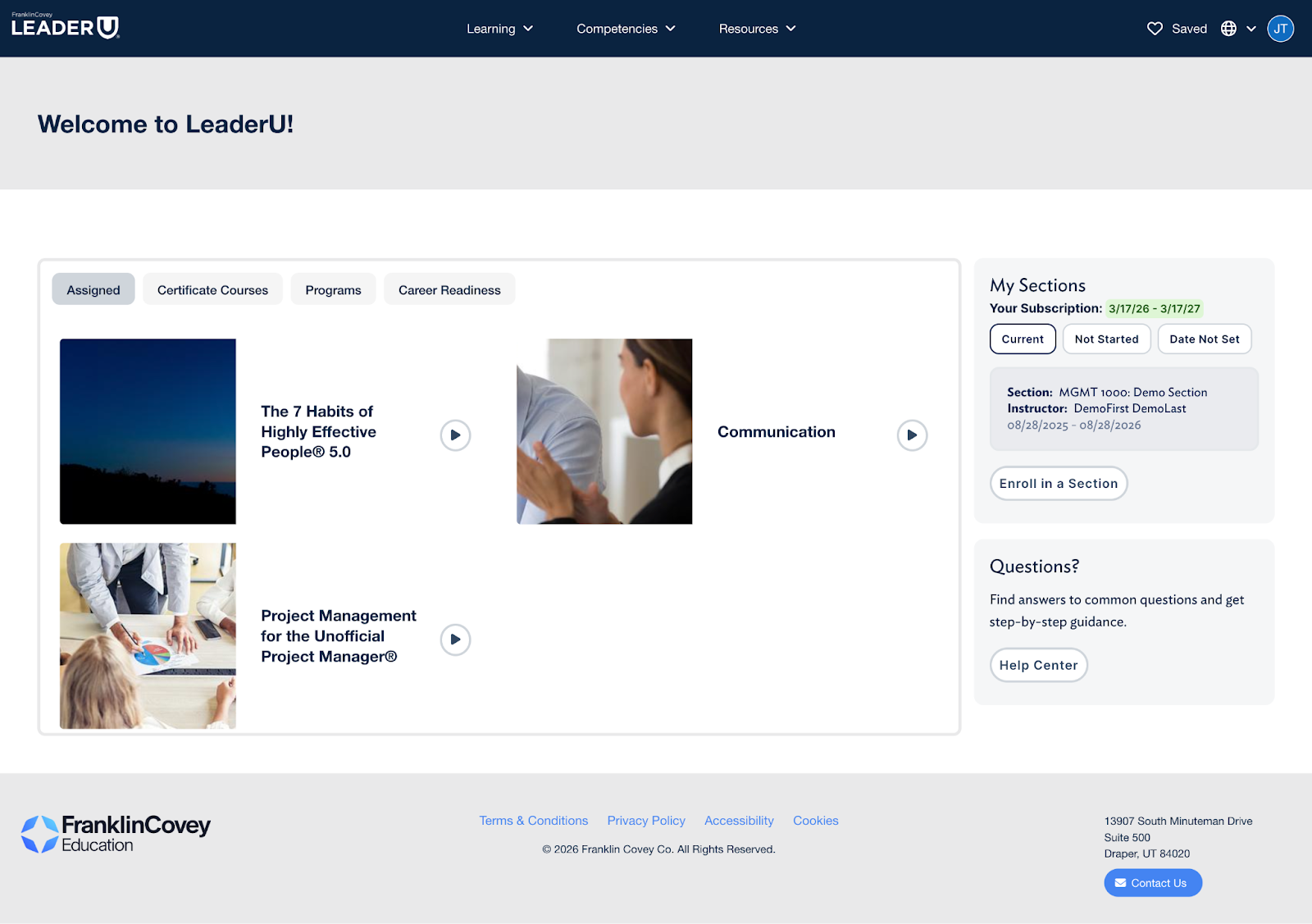 - Student Dashboard: A new widget with a button to the Help Center is now located on the Student Dashboard below My Sections.